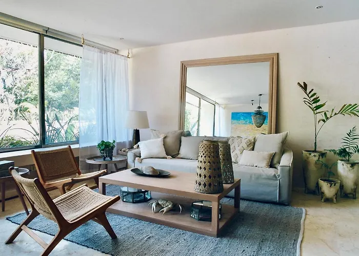 The 3-room 3 Bed Apartment Sleeps 6 - Private Pool & Hot Tub Tulum is approximately a 25-minute stroll from the white sand Paradise Beach and provides spa facilities such as a Jacuzzi bathtub. The apartment is located in the Zama district, 1.8 miles from Tulum Archaeological Site.